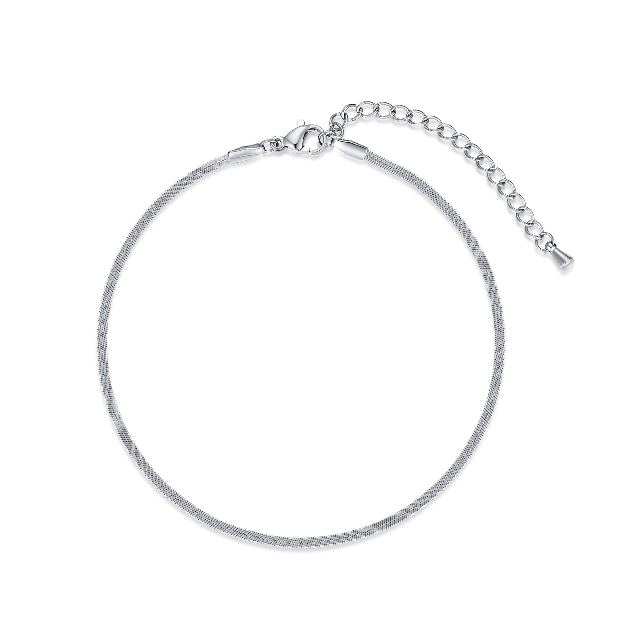 A fluid snake chain anklet with a high-shine finish. Smooth, minimal, and made to elevate your everyday look.