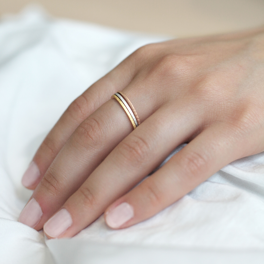 A set of two minimalist rings with a refined brushed finish. Clean, modern, and perfect for stacking. - Mix & match your favorite colors.