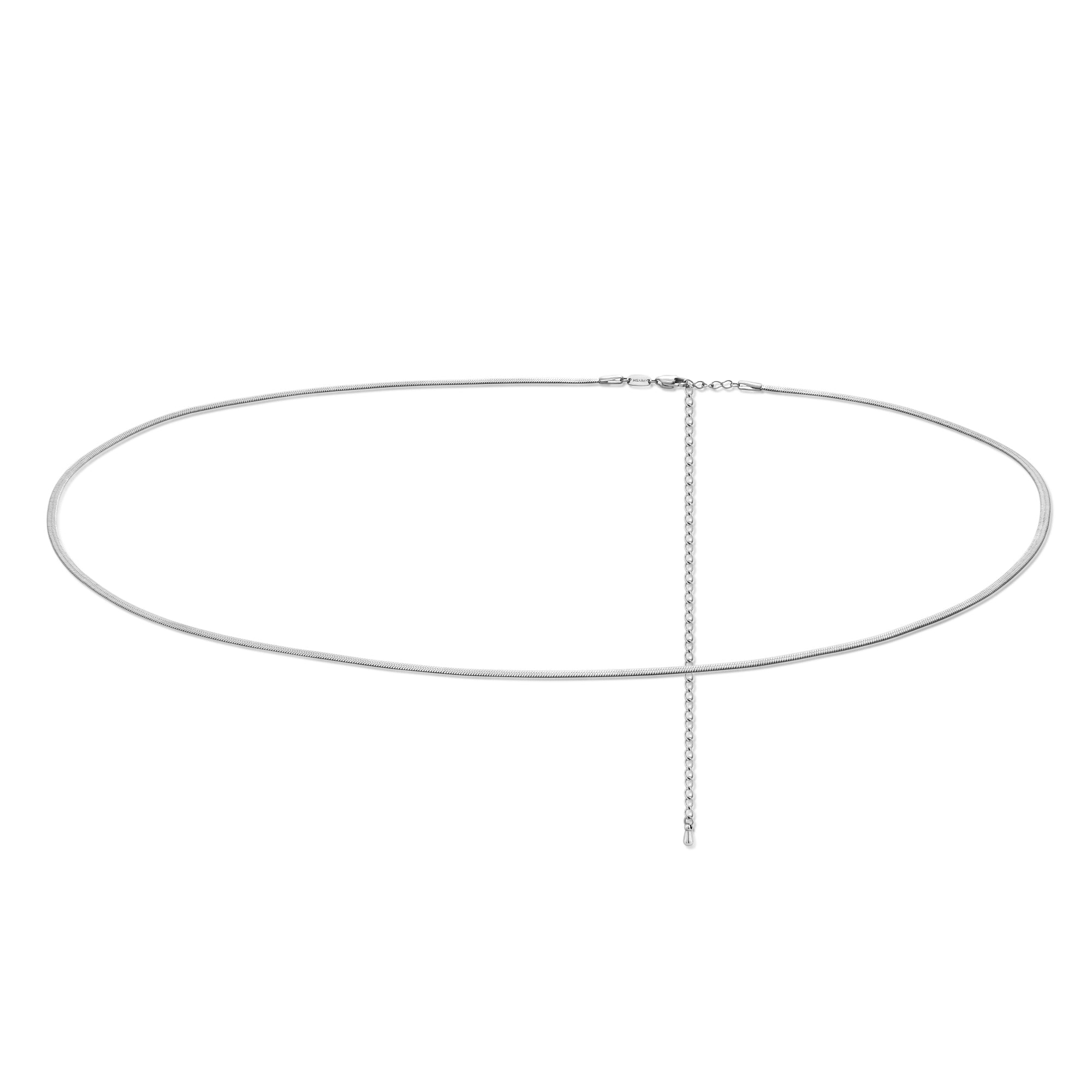 Snake belly chain with a smooth, fluid finish. Subtle yet bold, it hugs your waist for a sleek, sensual look.