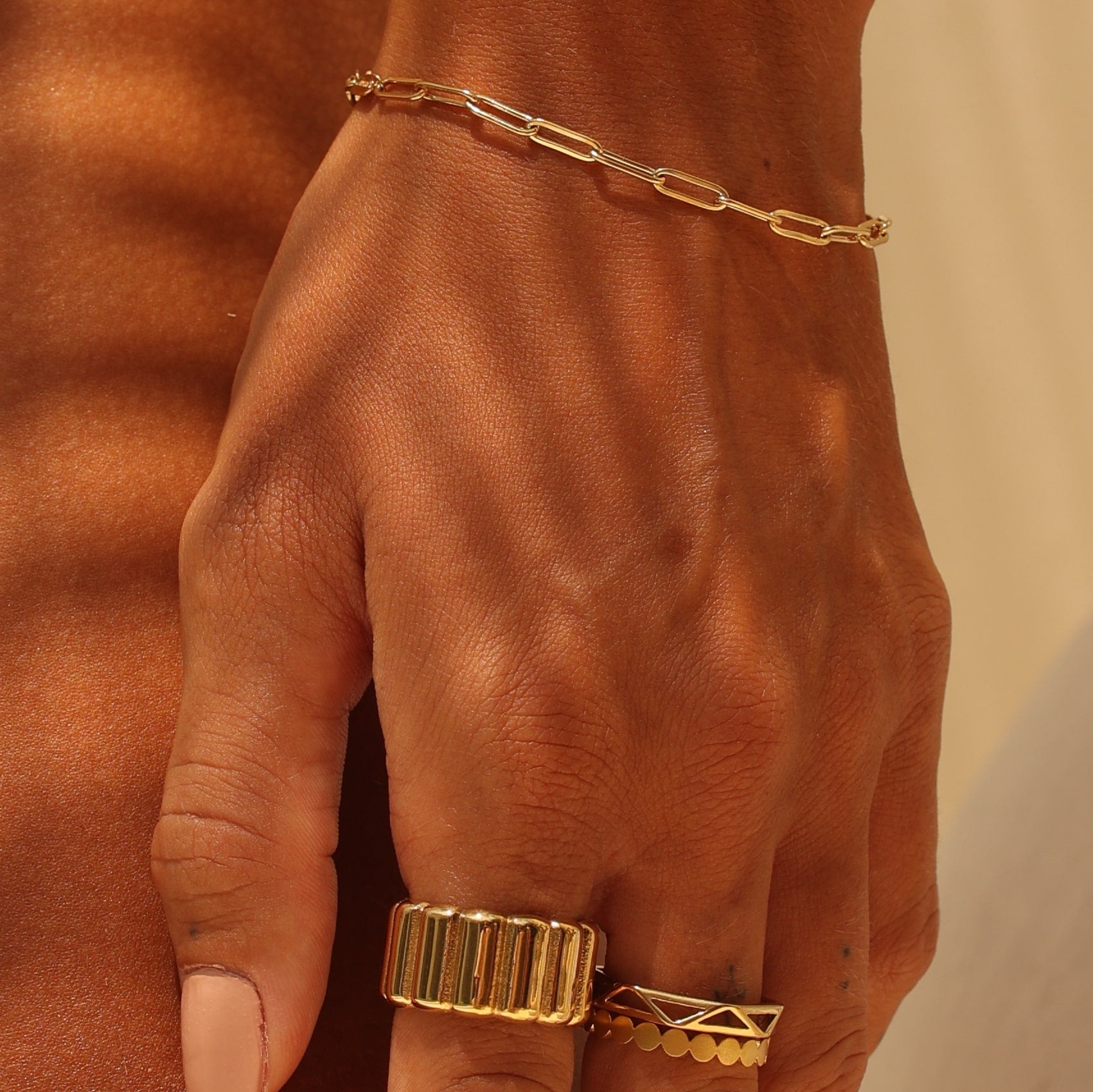 A sleek bracelet with elongated paperclip links. Bold yet minimal, perfect worn solo or layered.